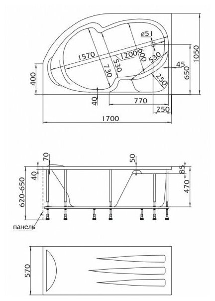 Асимметричная акриловая ванна Diana – легенда компании 1МарКа и бесспорная фаворитка среди наших клиентов. Размеры ванны 170х105х65. Просторная форма чаши позволяет принимать как ванну, так и душ.