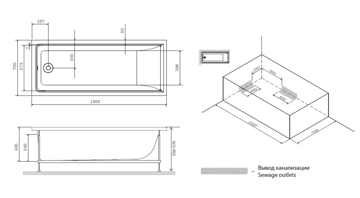 | Подходит только для | ванны am.pm gem 170 см |