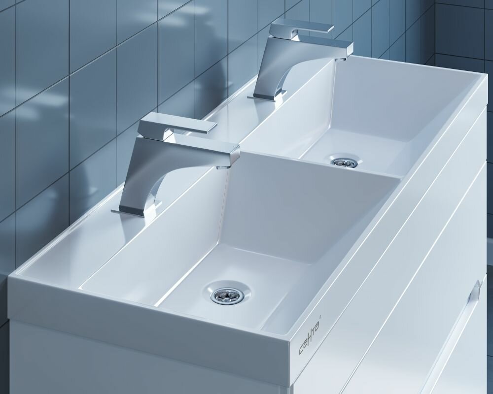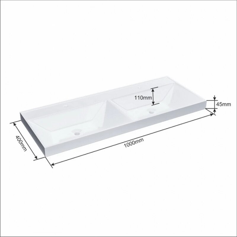 Умывальник "Юпитер100" это современный прямоугольный умывальник на две чаши из искусственного мрамора.