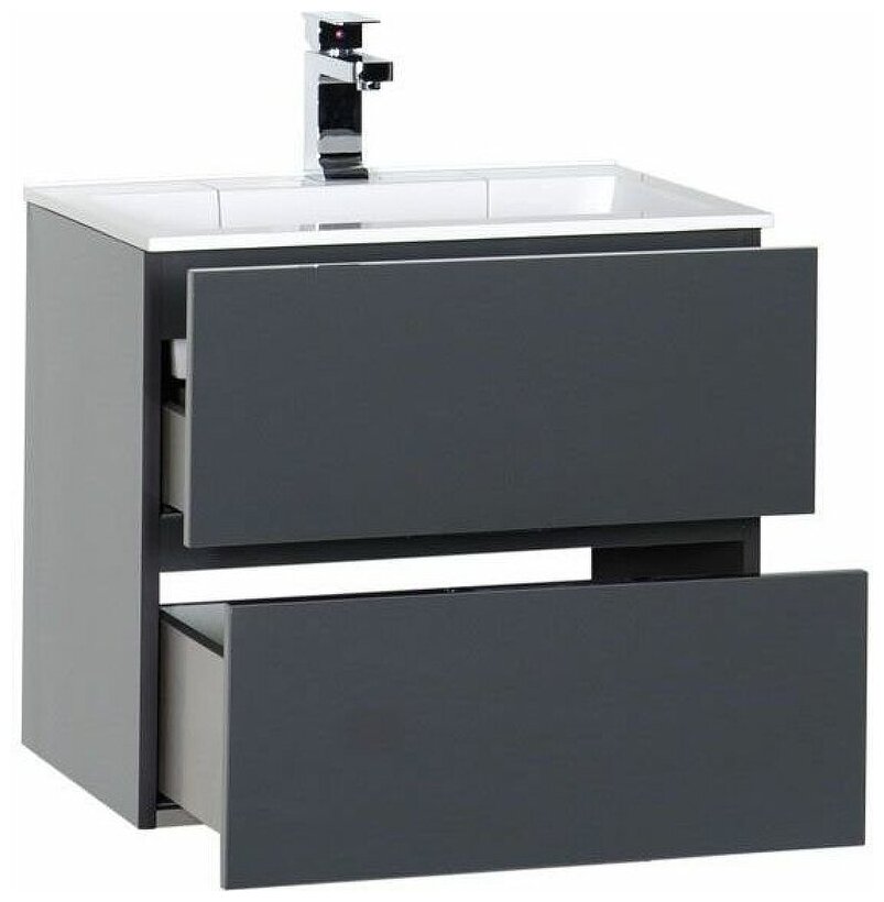 Современный дизайн демонстрирует аккуратный минимализм геометрически четких форм, где основная идея подчинена максимальной функциональности. Вместительная тумба с верхним и нижним выдвижными ящиками создает дополнительное пространство, где будут надежно скрыты от влаги банные принадлежности. Ящики тумбы закрываются легко и бесшумно, благодаря механизму доводчика.