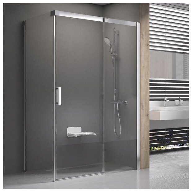 Роскошный раздвижной уголок, созданный с помощью комбинации душевых дверей и неподвижной стенки. Выберите необходимые части в зависимости от конкретных размеров Вашей ванной комнаты и создайте максимально удобное душевое пространство. Неповторимый дизайн с доминирующими массивными верхним и боковым профилями.