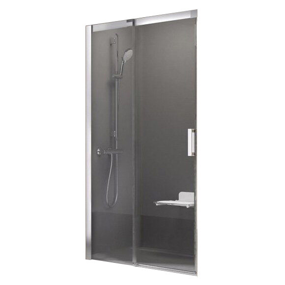 Роскошные раздвижные двери для Вашей ниши. Сделают герметичным душевое пространство шириной до 120 см. С помощью массивных профилей, верхнего и бокового, которые подчеркивают декоративные квадратные накладки, душевые двери придадут Вашей ванной комнате особый стиль.