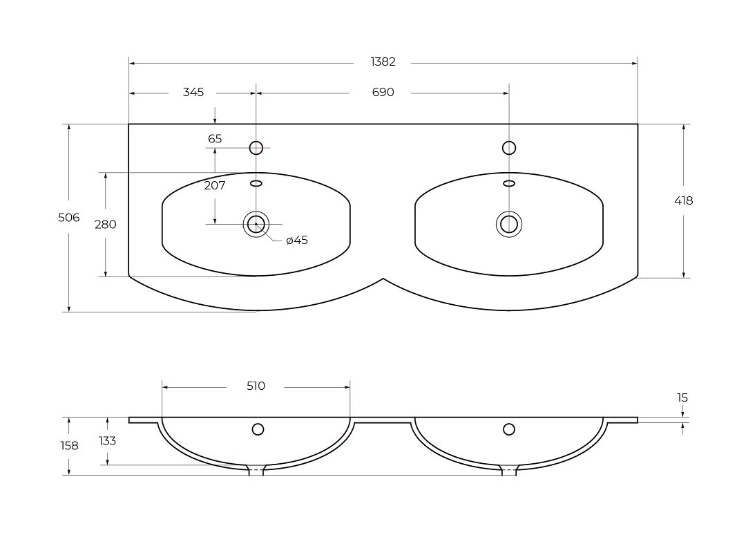 - Размер (ШхВхГ): 1382х158х506 мм.