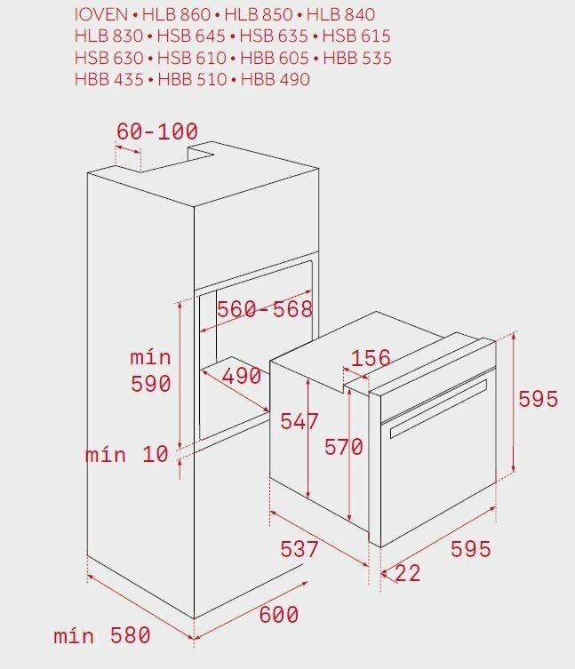 | Высота встраивания | 59см |