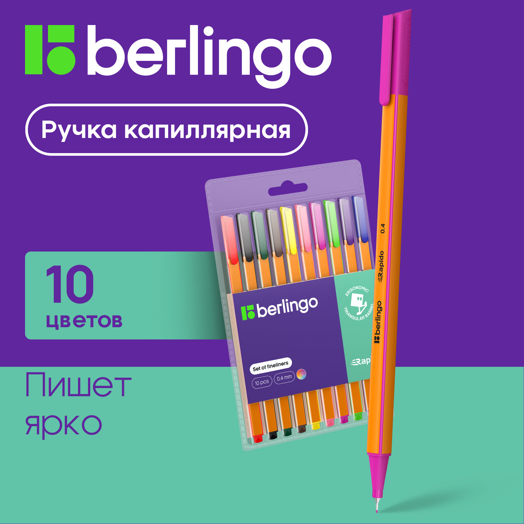 Набор капиллярных ручек Berlingo Rapido 0.4мм 10 цветов
