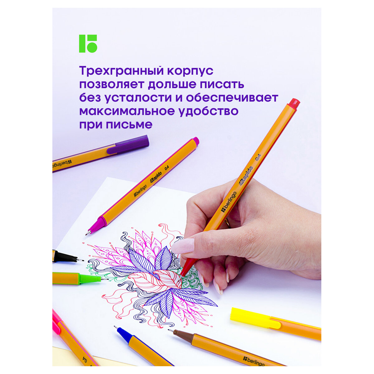 Капиллярная ручка обеспечивает особо легкое, мягкое и точное письмо, идеально подходит для рисования и черчения. Благодаря эргономичному трёхгранному корпусу максимально комфортна в использовании. Металлическое обжатие наконечника дает возможность работать с линейками и трафаретами. Высокое качество износостойкого пишущего наконечника и большой запас чернил значительно увеличивают срок службы ручки до 48 месяцев. Также, ручка долгое время не утрачивает пишущих свойств без колпачка. Чернила на водной основе. Цвет колпачка соответствует цвету чернил. Толщина линии 0,4 мм.
