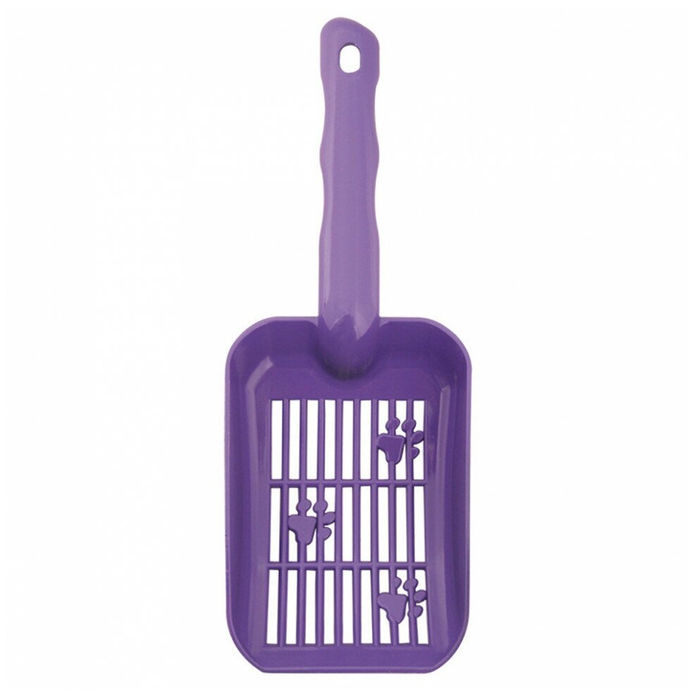 Удобный совок для очистки кошачьего туалета и досыпки наполнителя. Изготовлен из прочной нетоксичной пластмассы яркой расцветки. Рабочая поверхность с ячейкой среднего размера декорирована "кошачьими лапками" и отлично подходит для наполнителя со средним размером гранул. После использования изделие легко чистится под водой при помощи моющих бытовых средств.