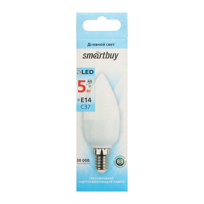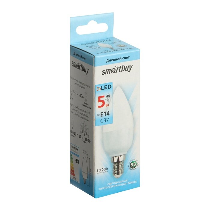 1943827 Лампа cветодиодная Smartbuy, Е14, C37, 5 Вт, 4000 К, дневной белый свет Энергосберегающие лампы Smartbuy предназначены для внутреннего освещения жилых и офисных помещений. Изделия подходят для всех приборов с аналогичным цоколем. Обеспечивают насыщенный цвет на протяжении всего срока службы, при этом экономят до 88 % электроэнергии.