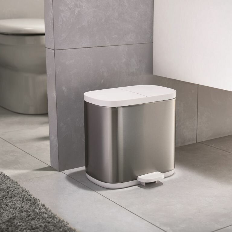 Без труда поддерживать порядок в ванной комнате вам поможет стильный контейнер Split. Он был разработан дизайнерами Joseph Joseph, воплотившими в нём свои принципы практичности и эргономичности. Особенно эта модель придется по душе тем, кто ответственно относится к состоянию окружающей среды и сортирует мусор. Контейнер состоит из 2 отсеков. Маленький предназначен для ватных дисков, палочек и другого мелкого мусора. В большой отсек можно выбросить бутылки от шампуня и банки от косметических средств. Благодаря эргономичному материалу, из которого изготовлен контейнер, вы можете использовать ведро даже без мешков для мусора. При необходимости его внутренняя часть легко вынимается и моется. Объём мусорного ведра для ванной составляет 6 литров. Брэнд: Joseph Joseph (Англия) Материал: АВS, полипропилен, нержавеющая сталь Размеры: 23,4 х 28 х 29,6 см