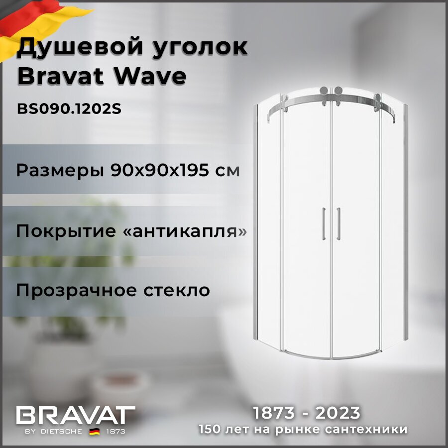 Душевой уголок Bravat Wave 90x90 BS090.1202S профиль Хром стекло прозрачное