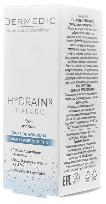 Dermedic ГИДРЕИН 3 ГИАЛУРО Крем для кожи вокруг глаз 15 г (Dermedic ) (604-DM-121)