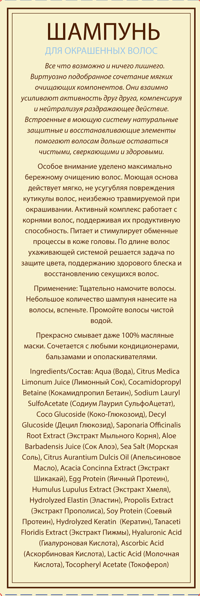 Тщательно намочите волосы. Небольшое количество нанесите на волосы, вспеньте. Промойте волосы чистой водой. Прекрасно смывает даже 100% масляные маски. Сочетается с любыми кондиционерами, бальзамами и ополаскивателями.ШТРИХКОД