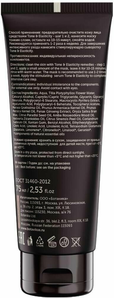 Botavikos Лифтинг-маска интенсивная "Грейпфрут и Кориандр" 75 мл (Botavikos ) (BOTA0301-0075)