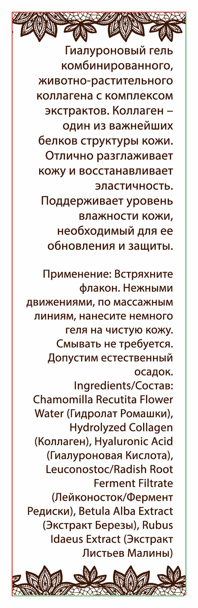 | Назначение | Антиоксидантный уход, Восстановление и питание, Увлажнение и смягчение, Успокаивающий уход |