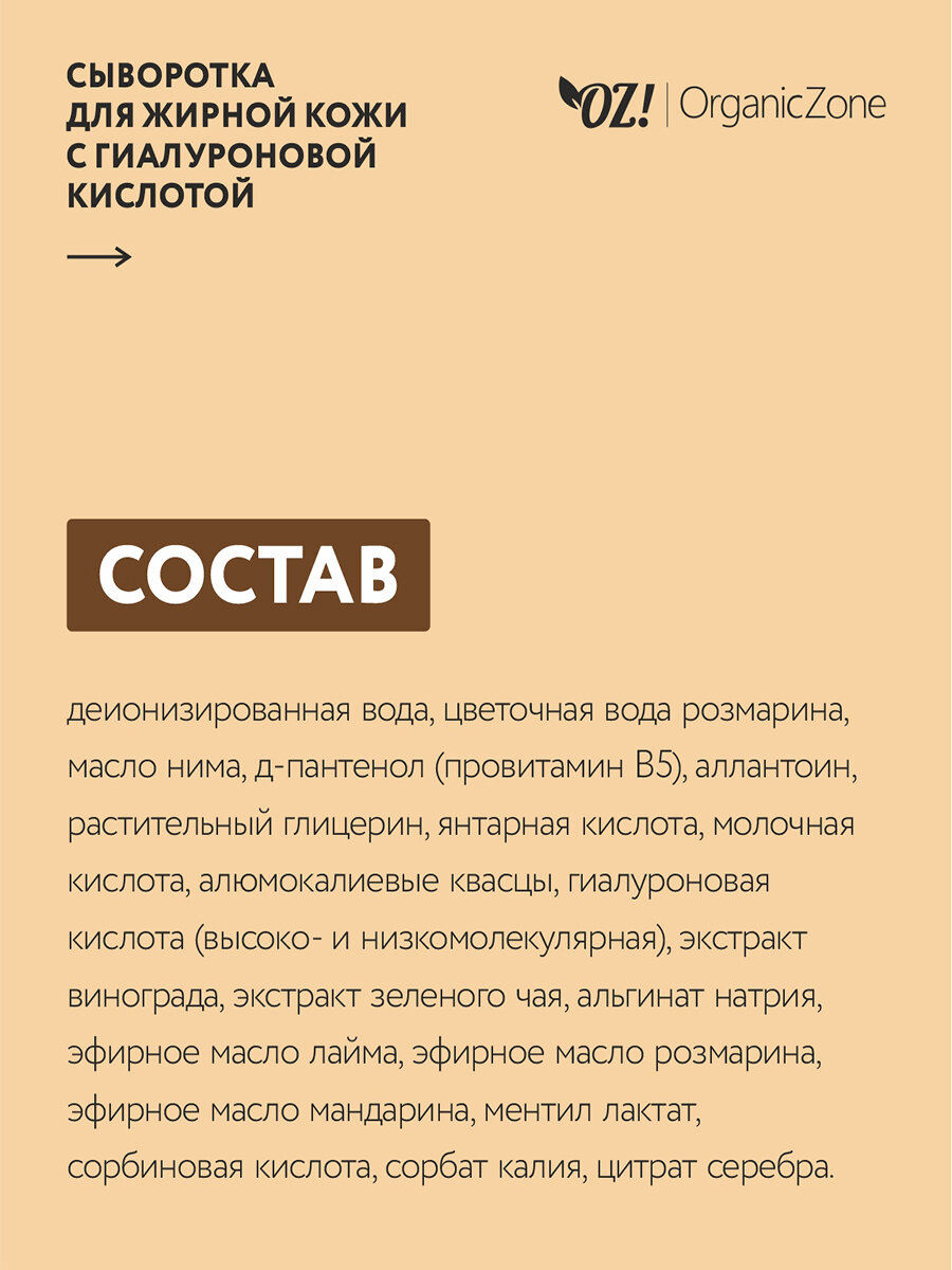 OZ! OrganicZone Гиалуроновая сыворотка для лица для жирной кожи и чувствительной кожи лица 50 мл (OZ! OrganicZone ) (ORZN0141-0050)