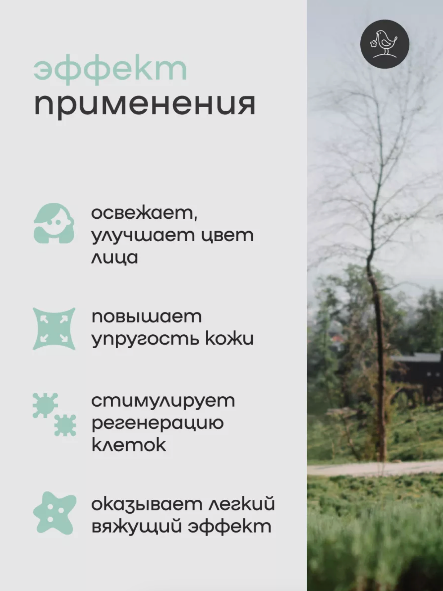 | Эффект | восстанавливающий; защитный; очищающий; питательный; тонизирующий |