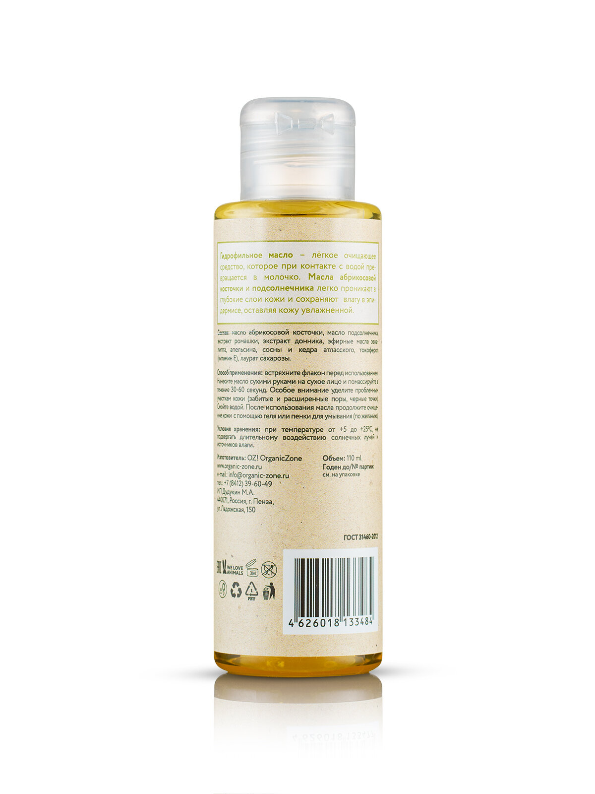 Органическое гидрофильное масло для нормальной кожи «Апельсин и сосна » Гидрофильное масло - лёгкое очищающее масло, которое при контакте с водой превращается в молочко. Гидрофильное масло отлично удаляет все, что накопилось на коже: тональные средства, водостойкий макияж, кожное сало, пыль. В отличие от распространенных ПАВов в средствах для умывания, оно не нарушает естественный жировой баланс и pH кожи, глубоко очищает поры. Масло абрикосовой косточки, масло сои легко проникают в глубокие слои кожи и сохраняют влагу в эпидермисе, оставляя кожу увлажненной.