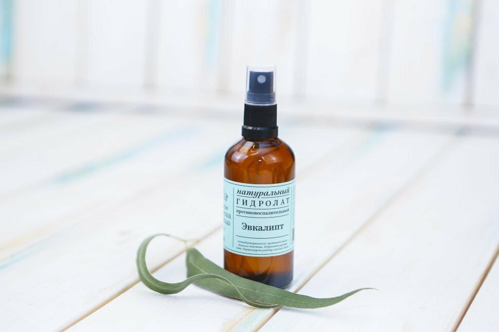 Гидролат Эвкалипт (цветочная вода) –продукт паровой дистилляции (выпаривания) листьев эвкалипта. Собранный конденсат пара - это целебная жидкость, которая содержит водорастворимые полезные компоненты растения. Для ухода за комбинированной, жирной кожей.
