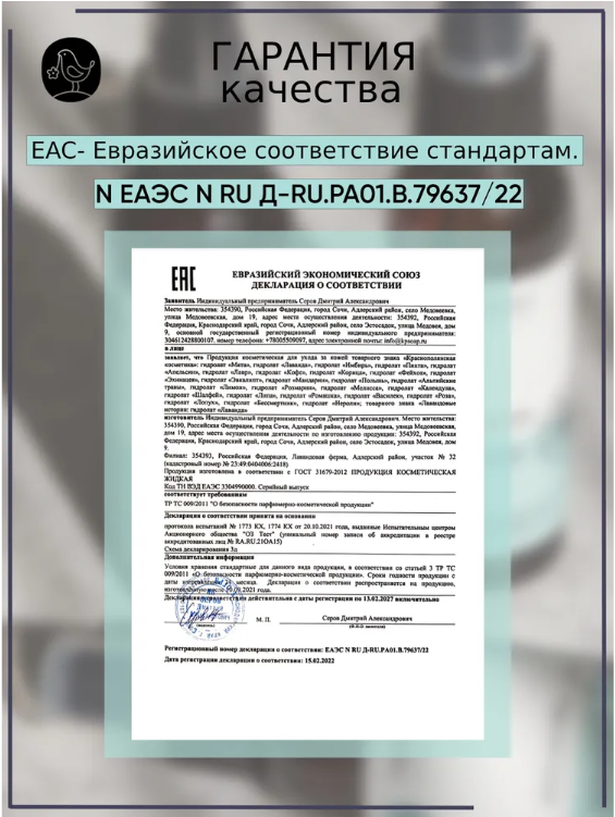 | Эффект | противовоспалительный; тонизирующий; увлажняющий; улучшение цвета лица |