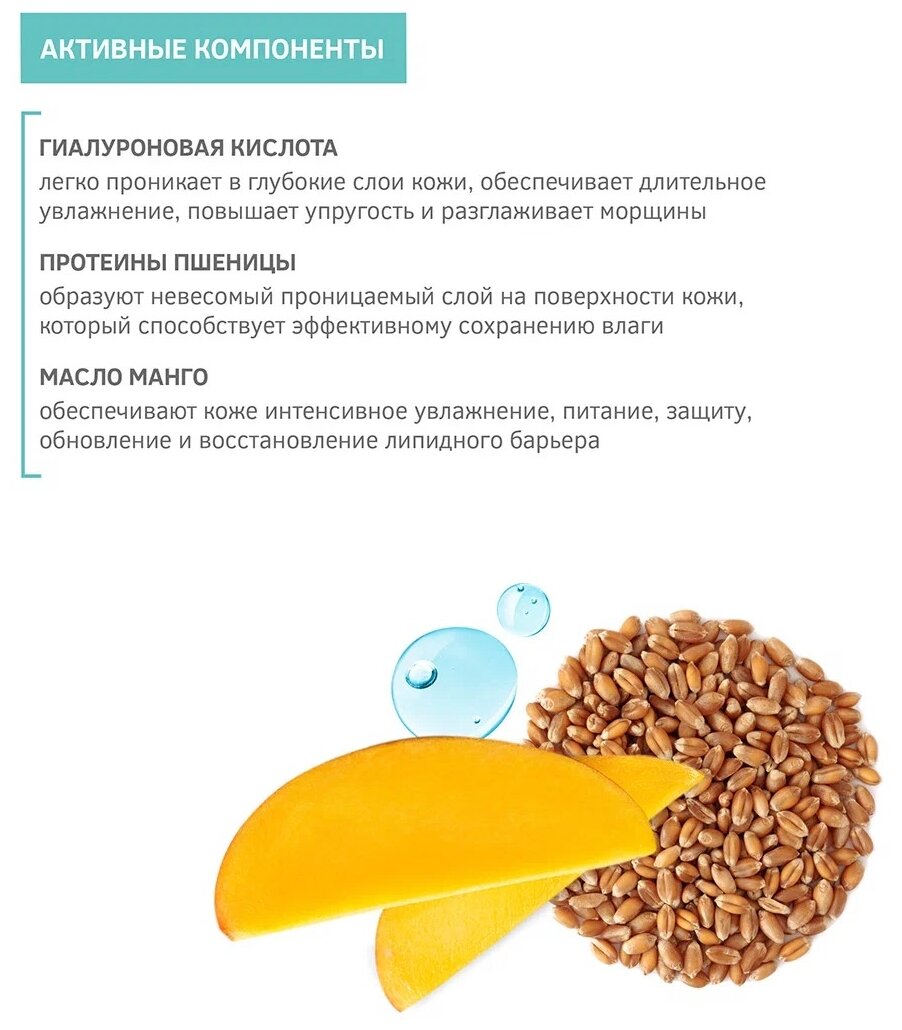| Состав | вода, масло зародышей triticum vulgare (пшеницы), цетеарилоливат, масло семян mangifera indica (манго), гидроксиэтилмочевина, масло butyrospermum parkii (ши), пропилгептилкаприлат, сорбитаноливат, глицерин, глюкоза, мочевина, гиалуроновая кислота, сорбитол, глутамат натрия, pca натрия, глицин, молочная кислота гидролизованная пшеничный протеин, пантенол, сополимер акрилатов натрия, токоферол, масло семян гелиантуса однолетнего (подсолнечника), лецитин, токоферилацетат, диацетат тетранатрия глутамата, гидроксид натрия, парфюмированная вода, феноксиэтанол, этилгексилглицерин, линалоол, лимонен |