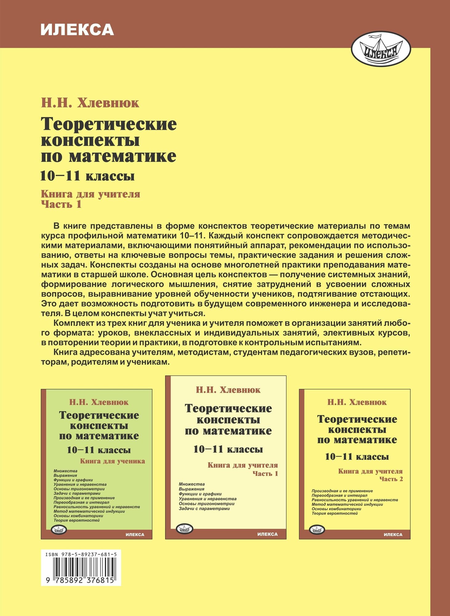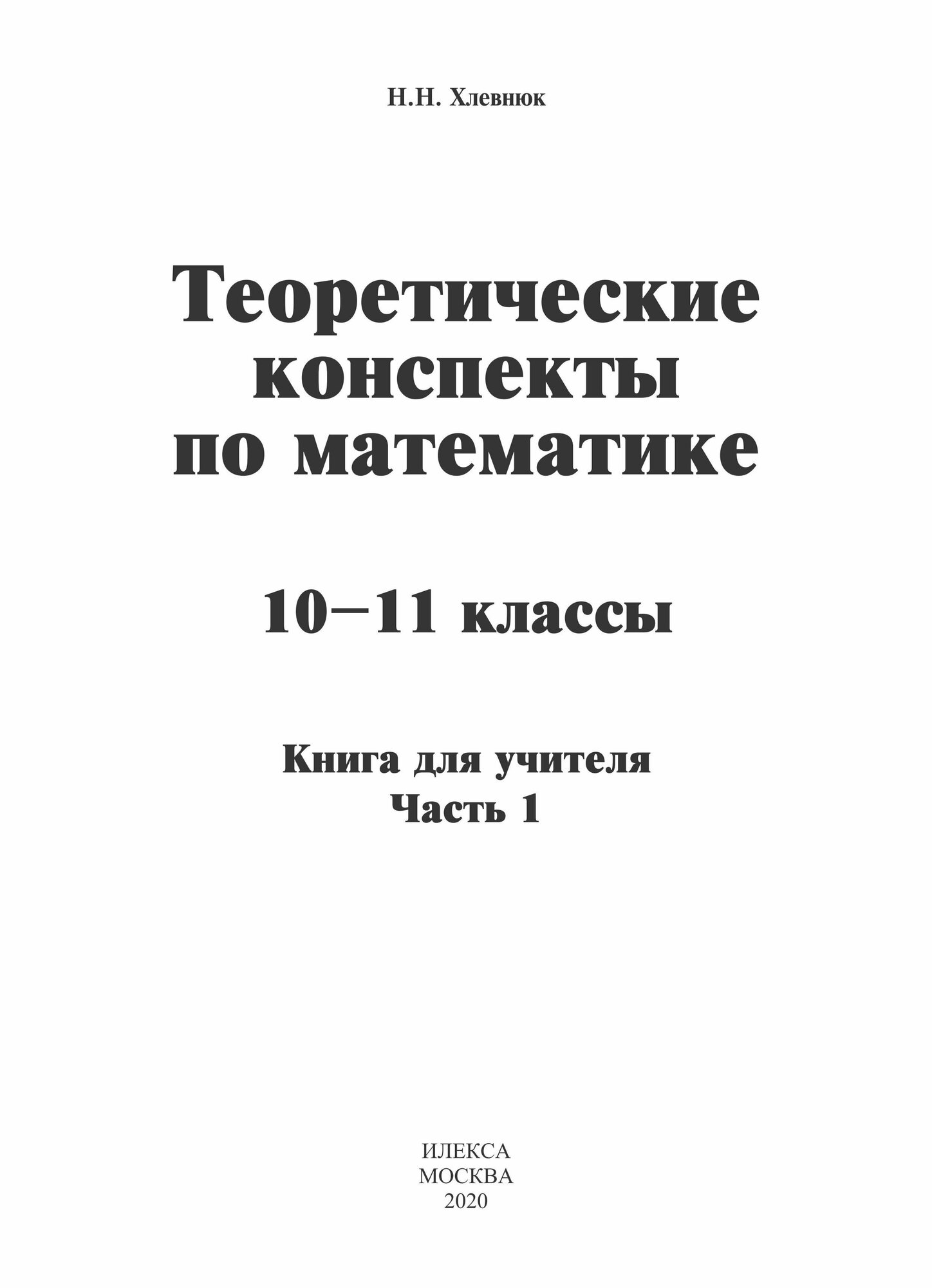 Теоретические конспекты по математике. 10-11 классы. Книга для учителя. Часть 1 (Хлевнюк Наталья Николаевна); Илекса, 2024