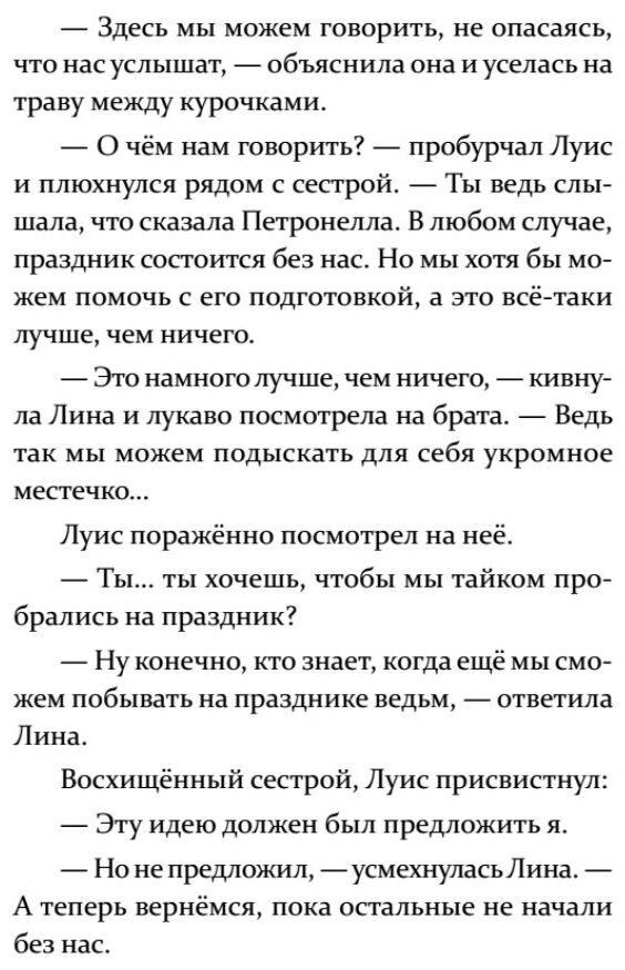 У Петронеллы в саду намечается большой слёт ведьм. Со всего мира колдуньи спешат на церемонию вручения золотой ведьминой косы самой выдающейся колдунье! На торжество могут попасть только настоящие волшебники. Что же делать Лине и Луису? Как им туда пробраться?
