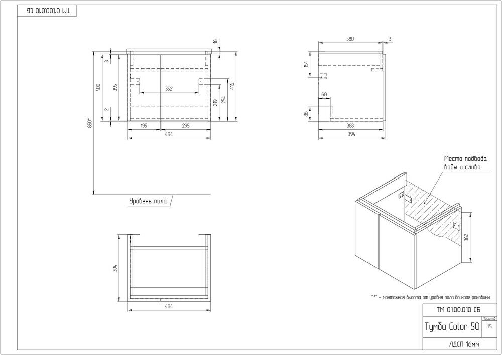 | Тип устанавливаемой раковины | Подвесная / Полувстраиваемая |