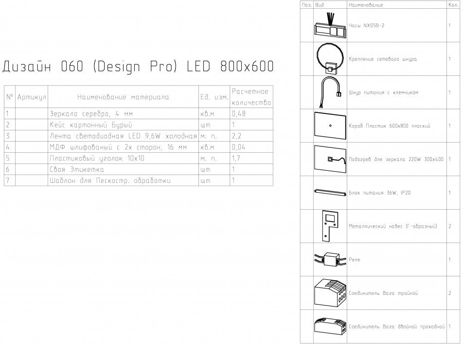 Модель: Led 060 Design 80 LU-LED060*80-p-Os с подсветкой с диммером, часами и подогревом