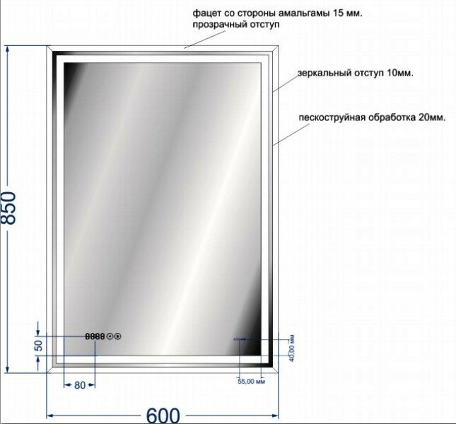 Модель: Led 080 Design 60 LU-LED080*60-p-Os с подсветкой с часами и подогревом