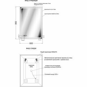 | Оснащение зеркала | С подсветкой, с выключателем |