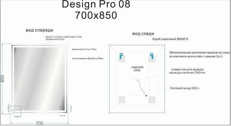 | Оснащение зеркала | С выключателем, с подсветкой |