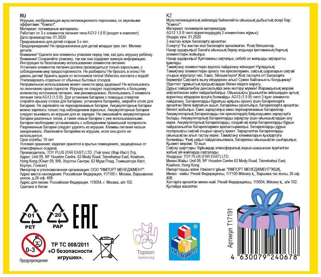| Состав | фигурка Компот 1шт |