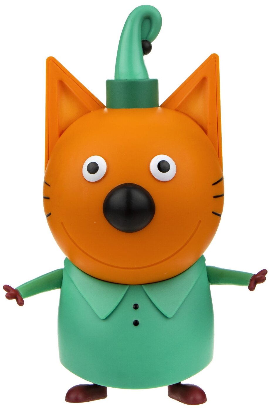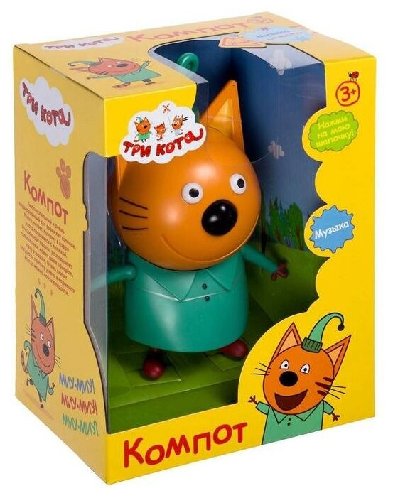 Игрушка в виде большой фигурки одного из главных героев анимационного сериала Три кота - Компота. Компот - старший котенок в семье. Он уже ходит в школу. Компот слегка тяжеловат и медлителен, но всегда поддерживает затеи младших брата и сестры. Фигурка размером чуть больше 16.8 см изготовлена из высококачественного и приятного на ощупь пластика.