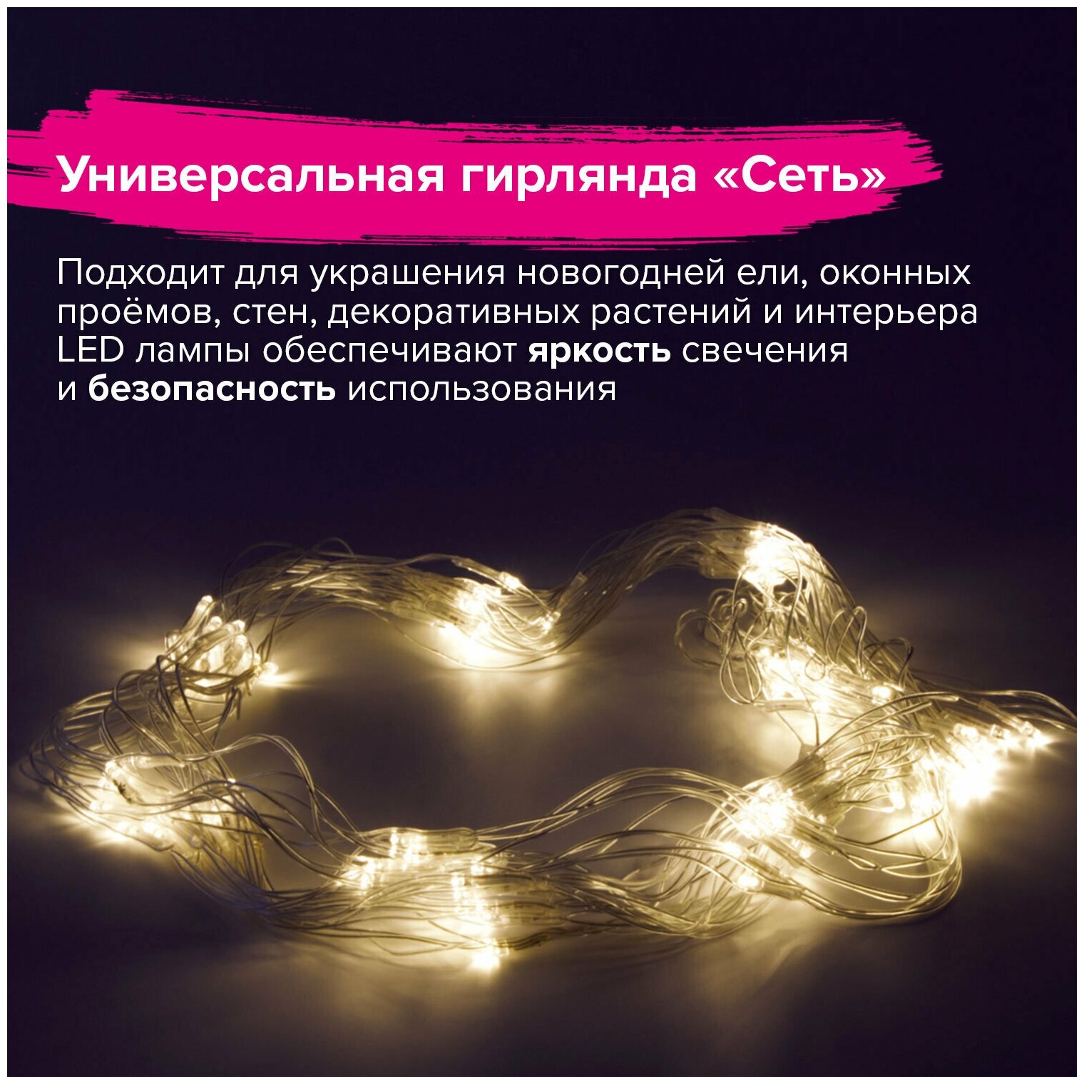 Модель: Электрогирлянда светодиодная Сеть 120 ламп 1,5х1 м