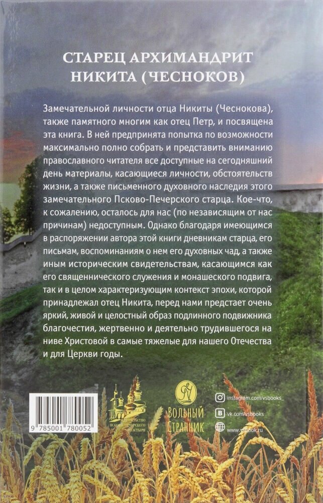 Замечательной личности отца Никиты (Чеснокова), также памятного многим как отец Петр, и посвящена эта книга. В ней предпринята попытка по возможности максимально полно собрать и представить вниманию православного читателя все доступные на сегодняшний день материалы, касающиеся личности, обстоятельств жизни, а также письменного духовного наследия этого замечательного Псково-Печерского старца. Кое-что, к сожалению, осталось для нас (по независящим от нас причинам) недоступным. Однако благодаря имеющимся в распоряжении автора этой книги дневникам старца, его письмам, воспоминаниям о нем его духовных чад, а также иным историческим свидетельствам, касающимся как его священнического служения и монашеского подвига, так и в целом характеризующим контекст эпохи, которой принадлежал отец Никита, перед нами предстает очень яркий, живой и целостный образ подлинного подвижника благочестия, жертвенно и деятельно трудившегося на ниве Христовой в самые тяжелые для нашего Отечества и для Церкви годы.