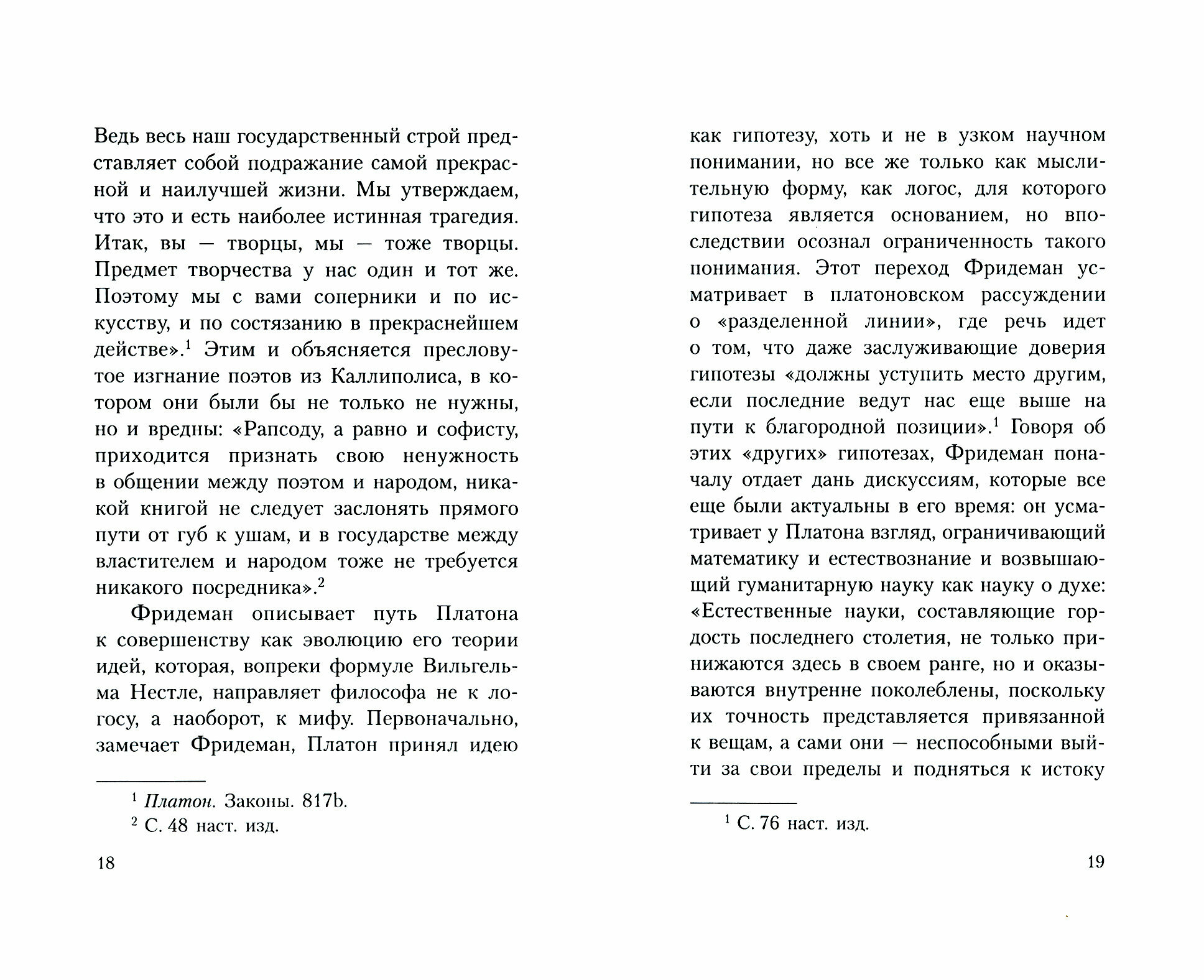 Речь идет о первой «книге-гештальте», в которой был реализован революционный проект георгеанской платонолатрии, противопоставлявшей себя традиционному академическому платоноведению. Она была написана молодым философом-соискателем и адептом «круга» Генрихом Фридеманом, получившим образование в университетах Германии и Швейцарии, а затем продолжившим его в неокантианских школах. Подчеркнуто антиакадемичная книга была высоко оценена самим Стефаном Георге, но его сотрудничество с Фридеманом роковым образом оборвалось: авт