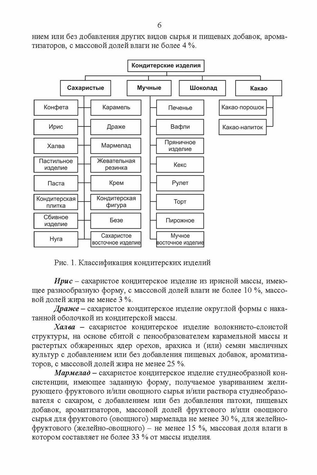 Представлена классификация кондитерских изделий с использованием установленных стандартами терминов и определений в области готовых изделий и полуфабрикатов кондитерского производства. Охарактеризованы состав и свойства сырья и вспомогательных материалов. Рассмотрены основные технологические схемы производства карамели, ириса, конфет, мармеладо-пастильных изделий, шоколада, мучных кондитерских изделий. Представлены закономерности формирования и требования к качеству полуфабрикатов и готовых изделий.