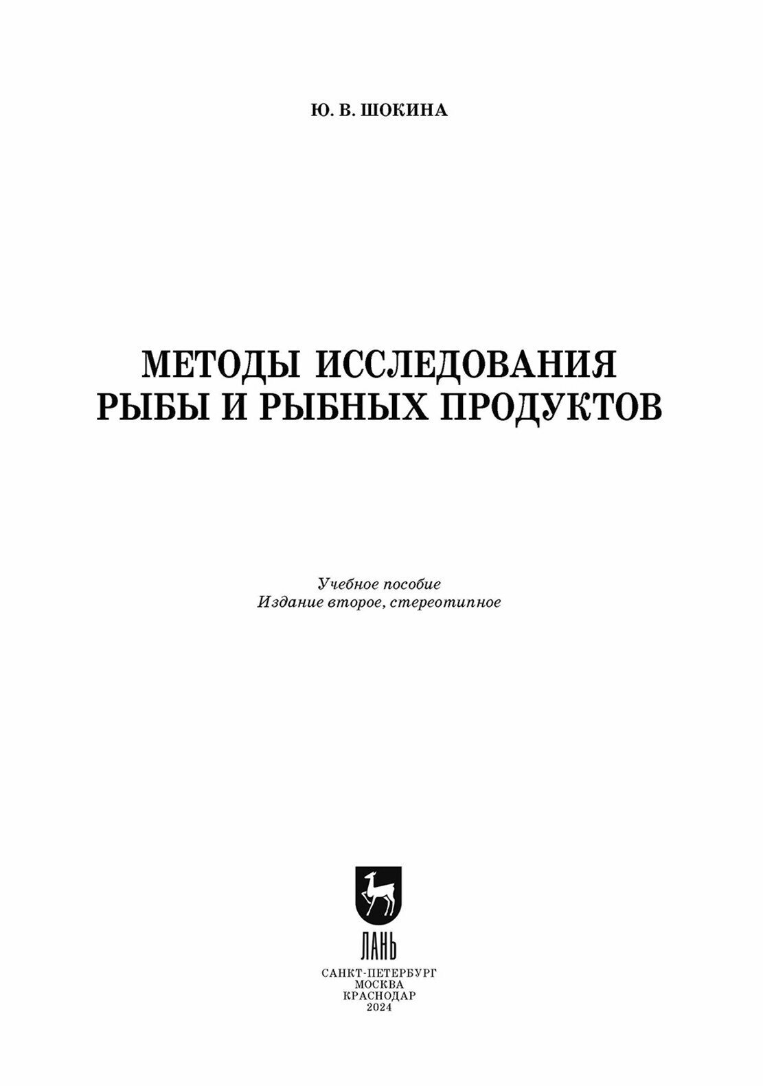 Методы исследования рыбы и рыбных продуктов. Учебное пособие. СПО (Шокина Юлия Валерьевна); Лань, 2020