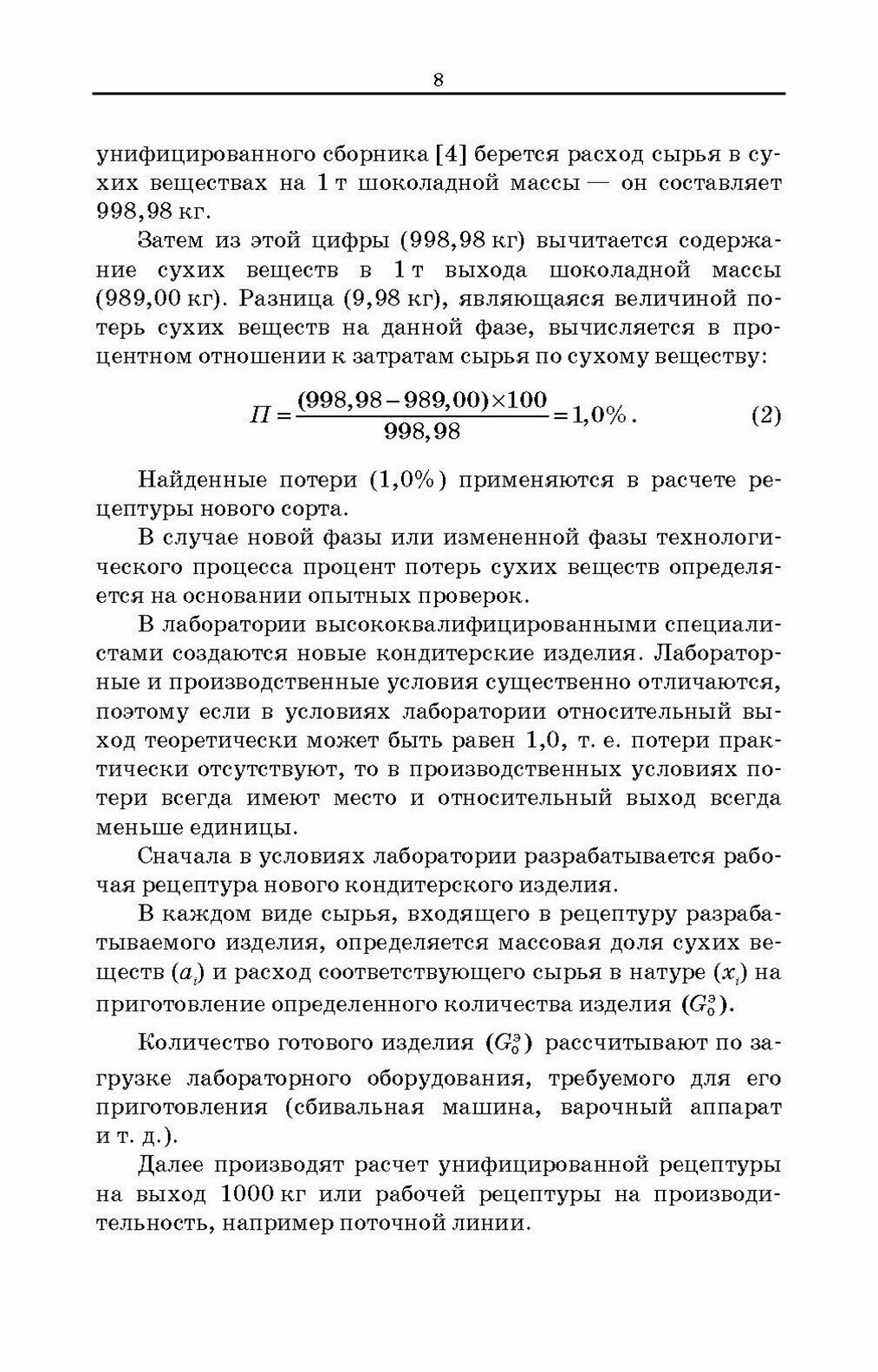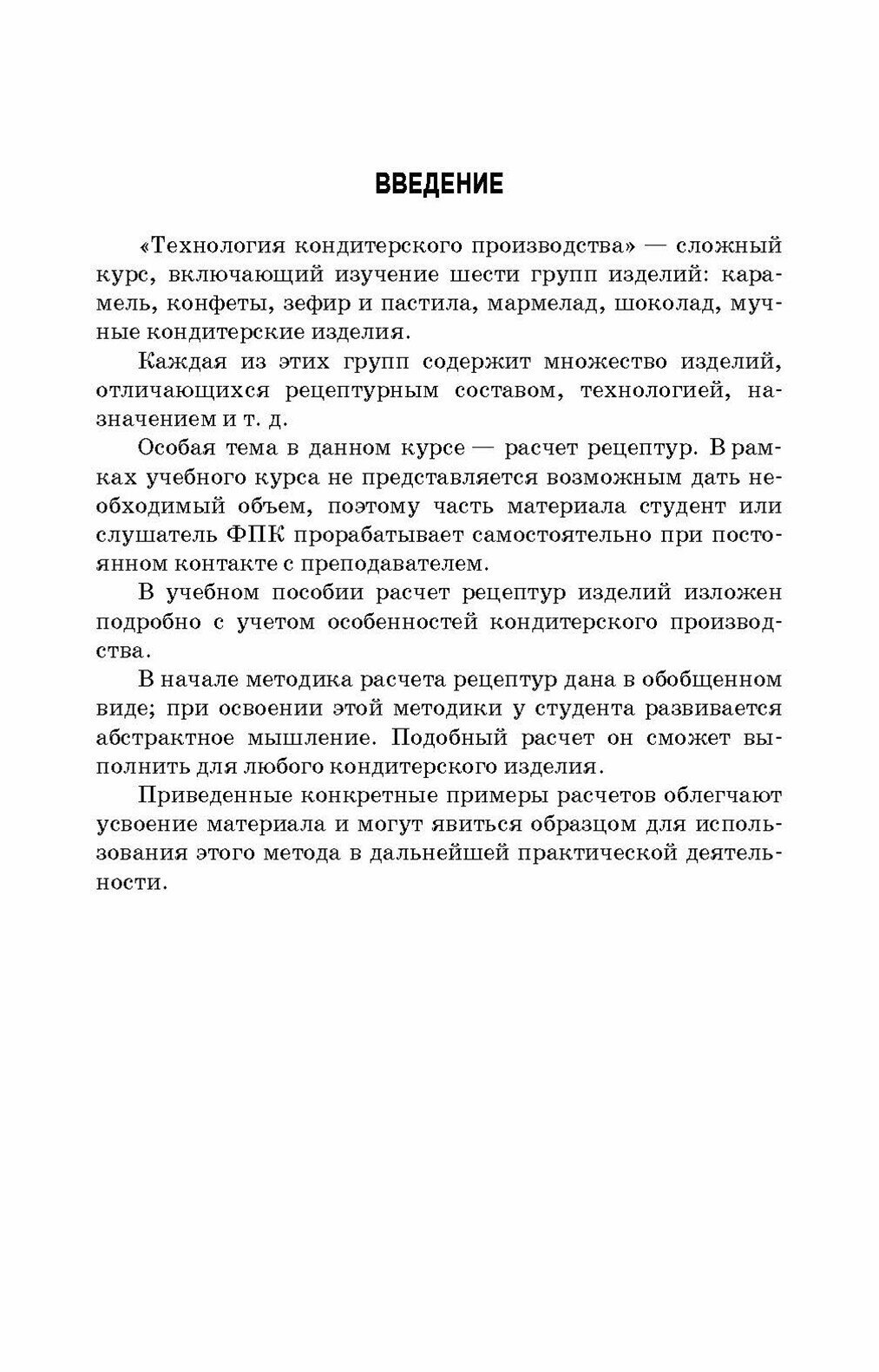 В учебном пособии изложена методика расчета и пересчет рецептур простых и сложных кондитерских изделий при условиях загрузки оборудования, расхода определенного рецептурного компонента, а также при замене сырья и использовании санитарнодоброкачественных отходов. Освещены вопросы расчета рецептур при изменении норм потерь сухих веществ по фазам производства и изменении соотношений полуфабрикатов.