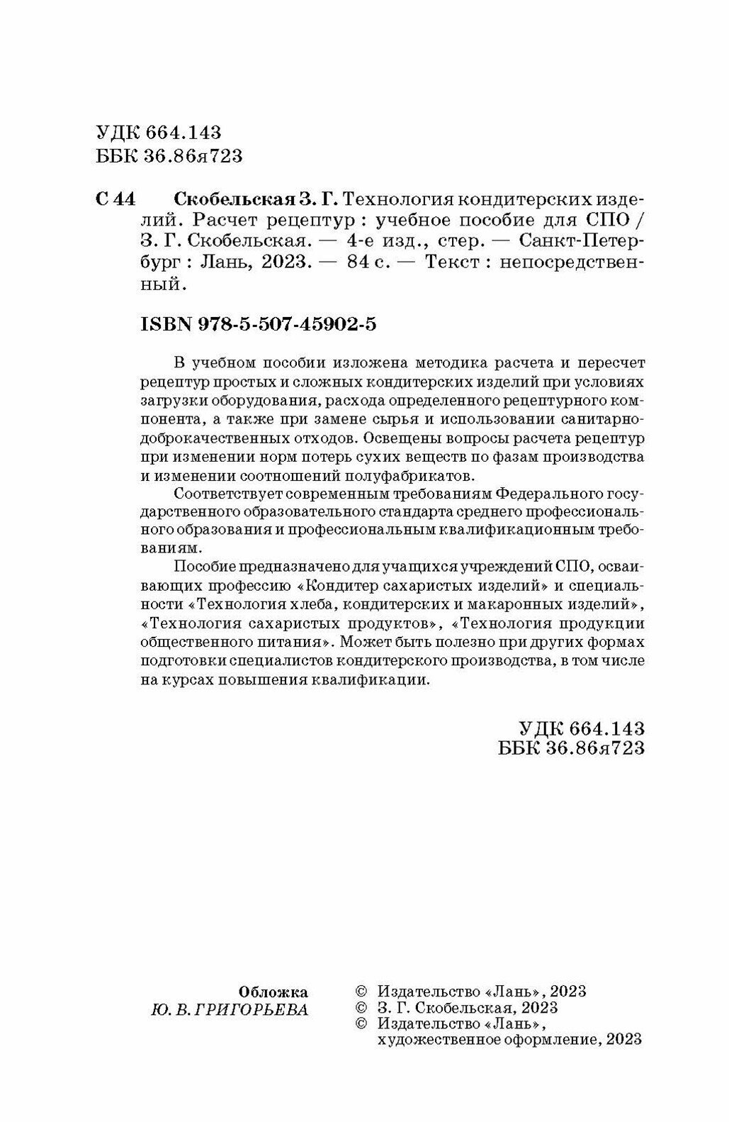 Сервис сравнения цен СкидкаГИД предлагает сравнить цены на товар «Книга: Технология кондитерских изделий. Расчет рецептур. СПО (Скобельская Зинаида Григорьевна); Лань, 2023»