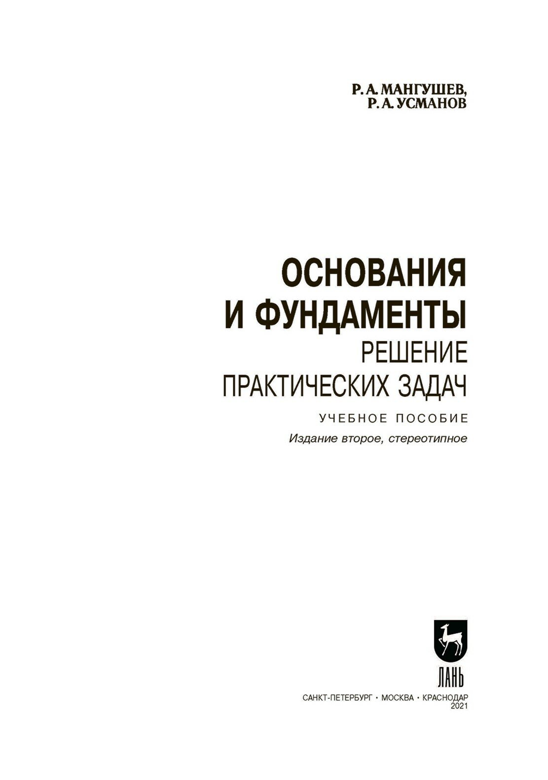 Основания и фундаменты. Решение практических задач. Учебное пособие. СПО (Мангушев Рашид Абдуллович, Усманов Рустам Алимджанович); Лань, 2021