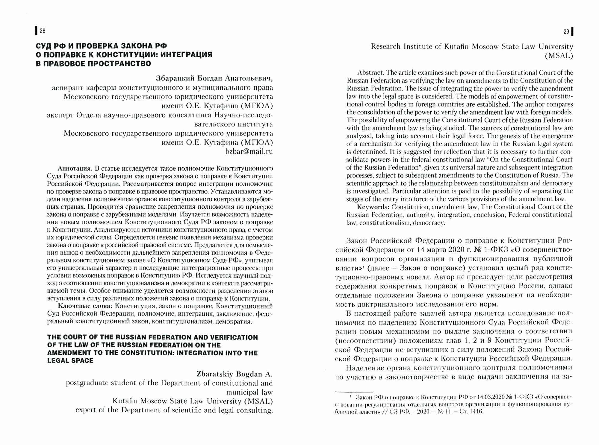 Коллективная монография посвящена различным проблемным вопросам трансформации российского законодательства в условиях современных социально-экономических вызовов, а также конвергенции и имплементации зарубежного опыта правового регулирования в отечественное законодательство. Подготовлена аспирантами Московского государственного юридического университета имени О.Е. Кутафина (МГЮА) по ведущим научным направлениям юридической науки и приурочена к 90-летию Университета имени О.Е. Кутафина (МГЮА). Издается при поддержке Конкурса «Золотые Имена Высшей Школы» по итогам победы в номинации «За вклад в науку и высшее образование» в 2019 году. Для студентов магистратуры, аспирантов и докторантов, научных и практических работников.