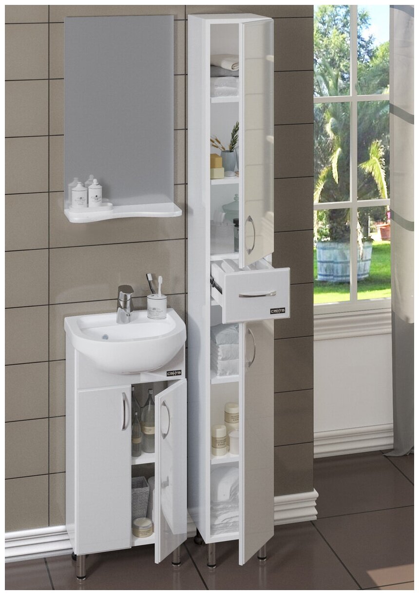 Компания СанТа использует при производстве высококачественные водоотталкивающие материалы (ДСП), соответствующие всем необходимым требованиям безопасности. Серия Сити отличается превосходным дизайном с соблюдением всех значительных элементов современного стиля. Основным цветом, в котором выполнено зеркало СанТа Сити является белый, безупречно впишется в любой дизайн проект. Зеркало предусматривает удобную и вместительную систему хранения, состоящую из полочек. Важные размеры товара: ширина 40 см, глубина 15.5 см, высота 68 см.