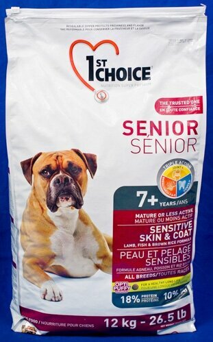 Сервис сравнения цен СкидкаГИД предлагает сравнить цены на товар «Сухой корм для собак 1st Choice Senior 7+ Sensitive Skin & Coat 12 кг»