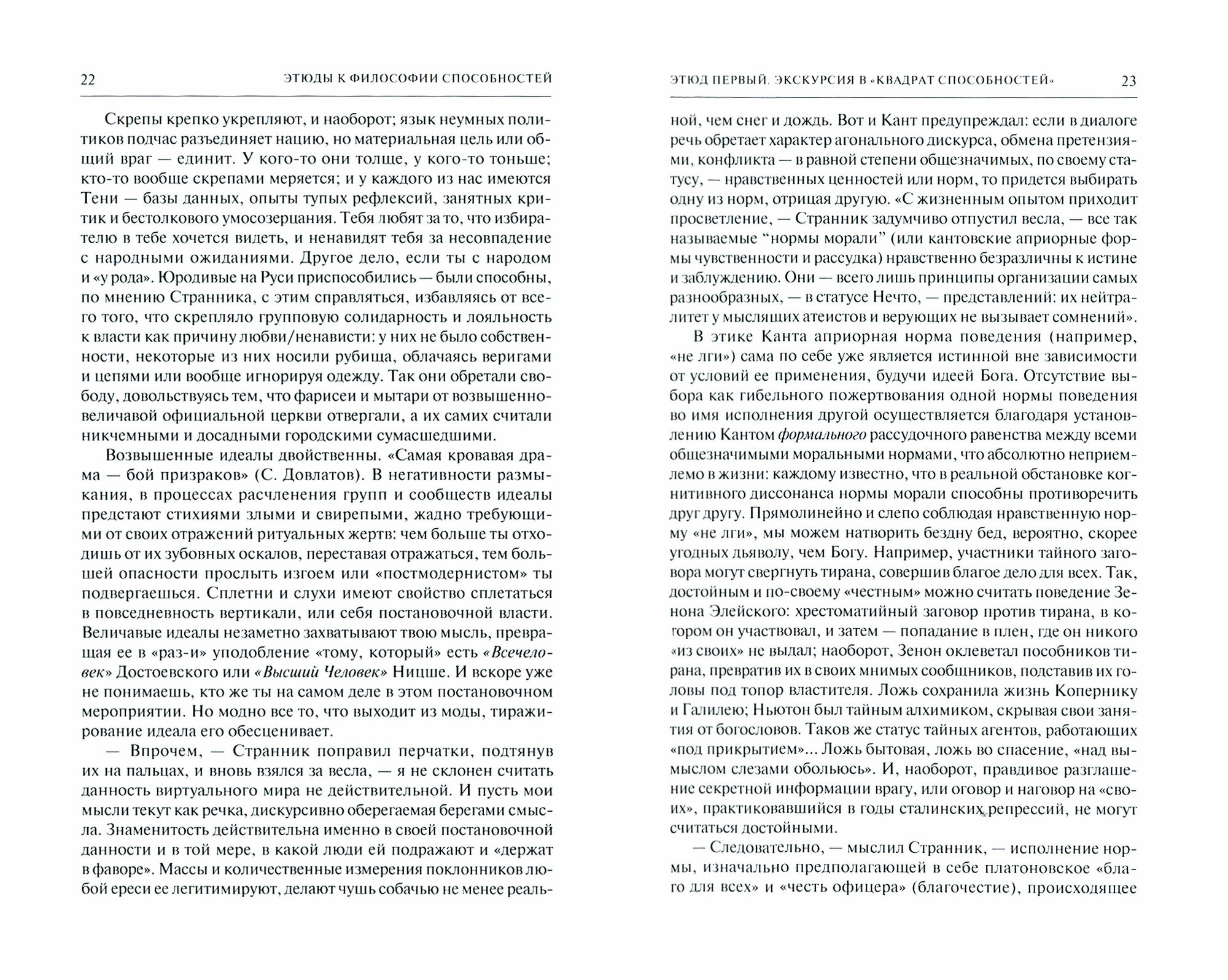 Сказываясь, создается мысль, иногда о будущем. Понимание сути бытия неотделимо от нашей способности жить, предполагать грядущее. Исходя из того, что в России утопии имеют свойство сбываться, автор моделирует обстановку, в которой его концептуальный персонаж - наследник идеала "всечеловека" Ф. Достоевского и утопии "высшего человека" Ф. Ницше, - "как бы" сбывается в диалогах двух друзей. Они сплавляются по реке Чусовой и спорят о человеческих способностях - их сути и становлении. Способности образуются в процессе "оспособления способами" чувствовать, помнить, воображать, мыслить. Процесс протекает в смысловом пространстве "фигуры на фоне", где встречаются, желая или отвергая друг друга, задатки, склонности, предпочтения юных дарований и подробности обстановок, душевность наставников, учительские эрудиции. Если встреча желаний ученика и терпения учителя состоялась, сплавилась, может, сбываясь, родиться способность.