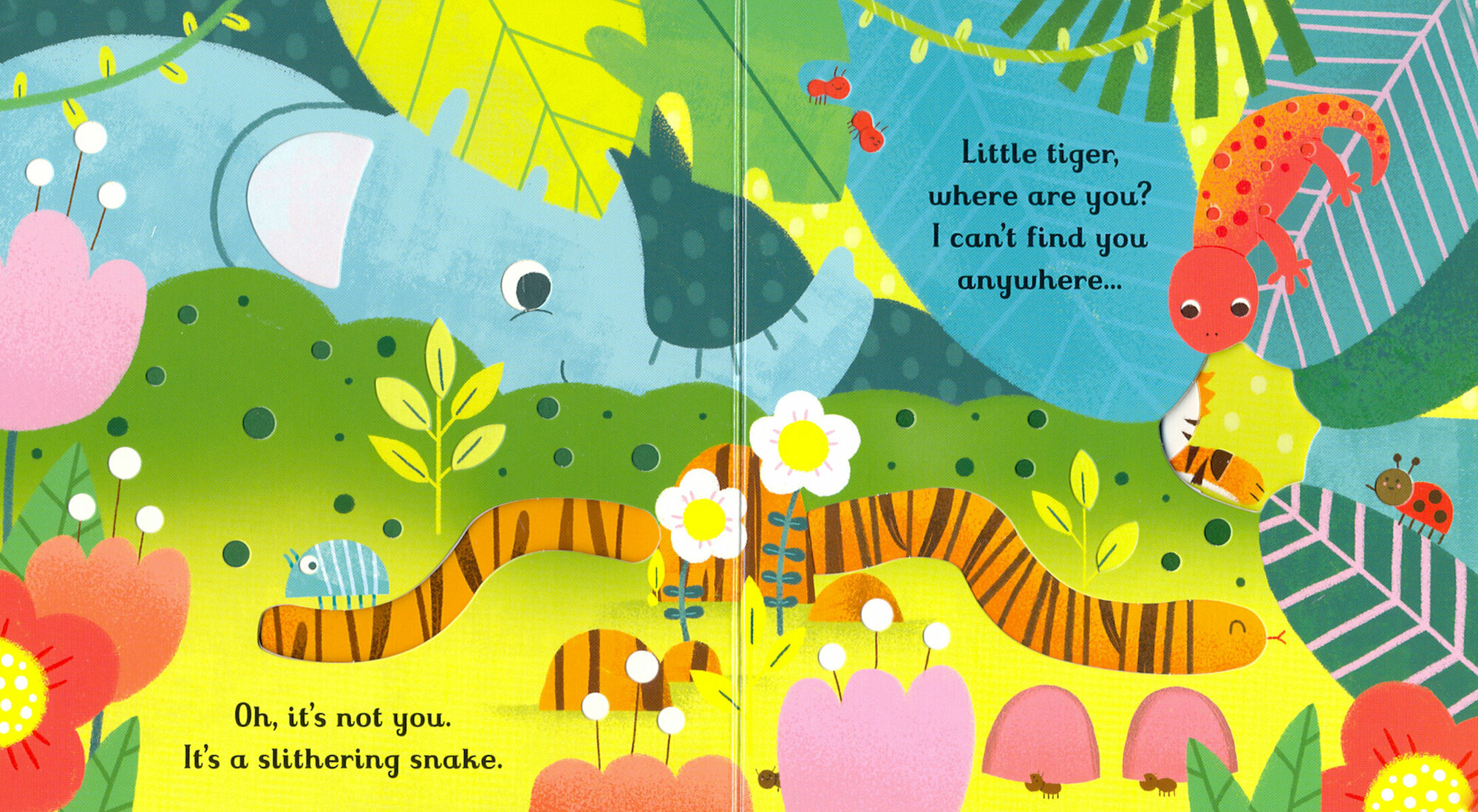 This playful book takes little children on a hide-and-seek adventure in search of the elusive little tiger. Die-cut holes on each page seem to reveal the tiger, only for it to turn out to be a different animal entirely when they turn the page. And, of course, they finally discover the tiger at the end.