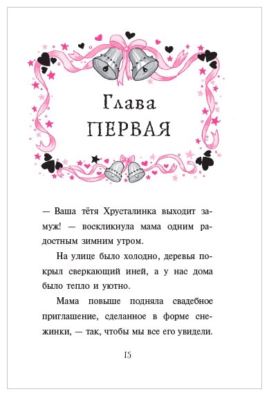 Дочка прочитала все книги про девочку фею - вампира Изадору Мун. 12 книги такая же красивая, как и все прошлые книги, имеет красивые иллюстрации в розово - берно-белом цвете. Новая книга погружает маленького читателя в сказочную свадьбу феи Хрусталинки, но на свадьбе оказывается кузина Мирабель. И в книге снова будет над чем подумать, посмеяться. Так например, Мирабель уменьшила Изадору и её сестрёнку вишенку и они решили попробовать свадебный торт, а потом потеряли Вишенку. Книга, как всегда интересная, дочка сказала, что самая интересная из 12. Нам вся серия очень нравится, дочка перечитала много раз, в книгах всегда есть, поучительный момент и интересный сюжет. Для детей с пяти до девяти отличные книги, чтобы полюбить чтения. А по иллюстрация можно учится рисовать. Теперь ждём про книгу про кузину Изадоры Мирабель