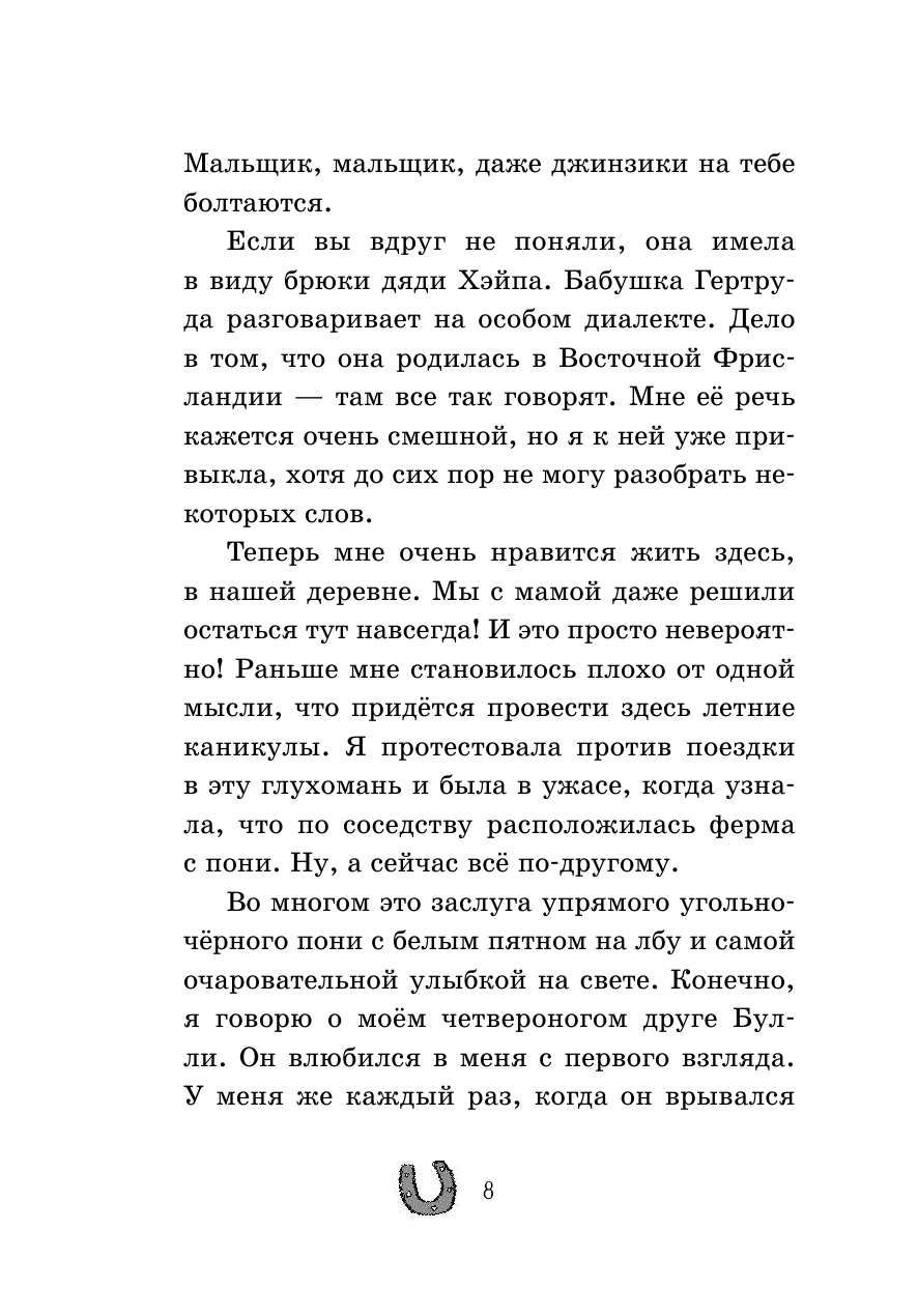Веселые истори, рассказываются от имени девочки Лины и ее пони Булли. Текст и содержание будут близки для девочек младшего школьного возраста. Очень простой слог, речь, поведение и переживания главной героини очень характерны для девочек возраста 8- 11лет. Для взрослых- текст и сюжет слишком примитивные. Здесь нет закрученного детективного сюжета, сложных загадок и вычисления преступника. Полкниги об отношениях девочки и пони, буквально 2-3главы поиски расследования.
