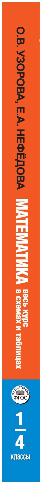 В учебном пособии О. В. Узорова , Е. А. Нефёдовой "Математика. Весь курс начальной школы в схемах и таблицах" все правила по математике представлены в схемах и таблицах, кажой теме даёся подборка примеров и зхадач. Благодаря многообразию интересных упражнений школьники научатся быстро считать, будут заниматься с интересом и удовольствием.