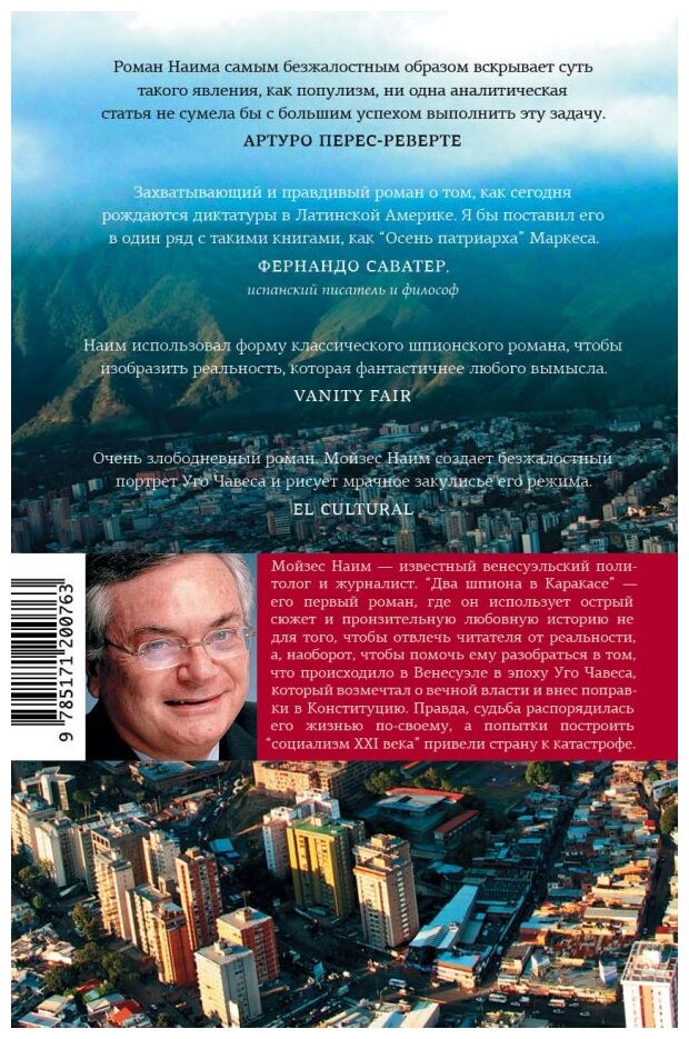 "Два шпиона в Каракасе" - его первый роман, и написан он в жанре шпионского триллера, однако вымышленные по большей части персонажи и захватывающий сюжет помогли автору создать яркую и убедительную картину реальности, в достоверности которой трудно усомниться. Это история правления Уго Чавеса, мечтавшего о вечной власти. Он даже внес ради этого поправки в Конституцию, однако судьба распорядилась его жизнью по?своему. Теперь всем известно, какой катастрофой обернулись для Венесуэлы попытки построить там "социализм ХХI века".
